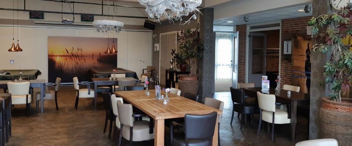 Door middel van een grote vouwwand kunnen wij van beide ruimtes één grote zaal maken, welke geschikt is voor 150 personen, en dan is er ook nog ons terras met 30 zitplaatsen.